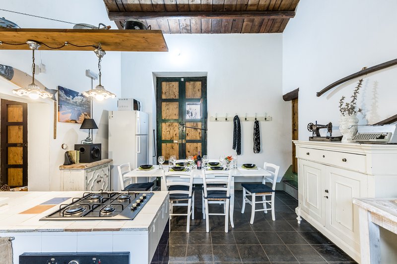 Fino a 8 persone, in un rustico completamente arredato, composto da 1 ingresso, soggiorno, 3 camere da letto, 1 cucina con forno elettrico, 2 frigo, 1 tv satellitare e wi-fi, 2 bagni con doccia e lavatrice. All’esterno area attrezzata (tavoli, sedie, panche, ombrelloni, amache e sdraio) con: piscina (10×5 metri), doccia esterna, lavandino, barbecue, forno a legna e parcheggio.