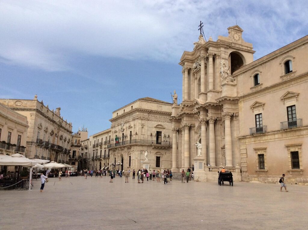 Il duomo di Siracusa, ufficialmente Cattedrale Metropolitana della Natività di Maria Santissima, sorge sulla parte elevata dell’isola di Ortigia, incorporando quello che fu il principale tempio sacro in stile dorico della polis di Syrakousai, dedicato ad Atena (Minerva) e convertito in chiesa con l’avvento del cristianesimo.