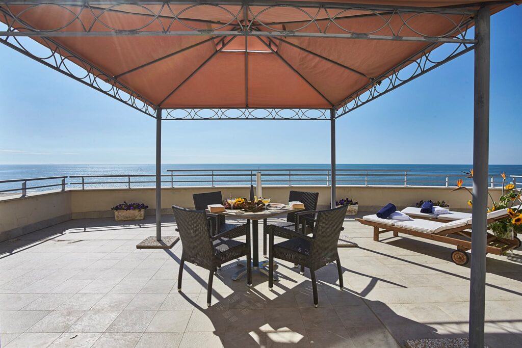 Una posizione strategica che offre una vista privilegiata sul lungomare di Viareggio. Dallo stile elegante e moderno, l’hotel offre un soggiorno rilassante e dolce come il sottofondo delle onde del mare.