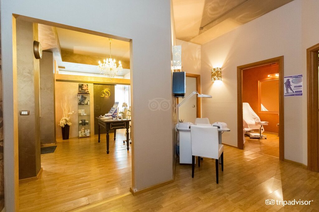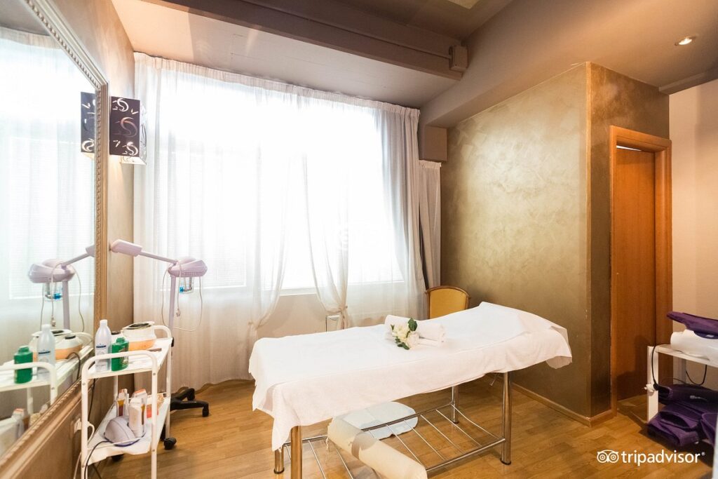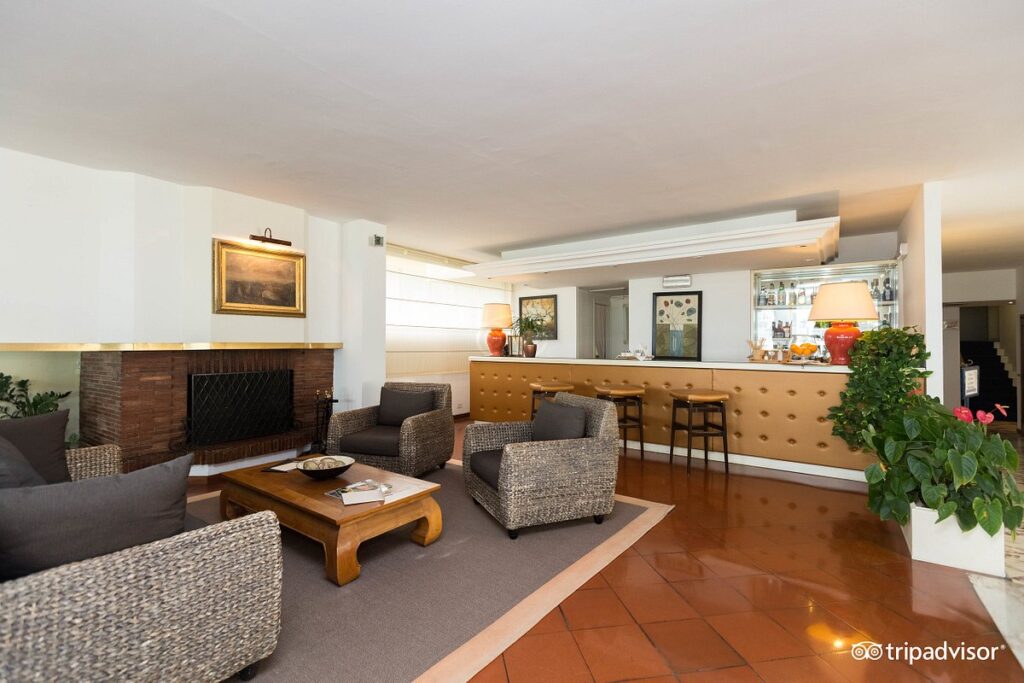 76 camere, Suites con ampia terrazza e vista frontale del mare, Aria condizionata, Telefono diretto, Cassaforte, frigobar, TV via satellite, Impianto Wi.Fi, American Bar “Il Caminetto”, Ristorante “La Conchiglia”, Saloni per banchetti, Sale riunioni, Centro benessere con solarium, piscina coperta, sauna, palestra attrezzata e trattamenti estetici, Garage privato e Parcheggio